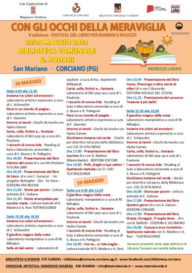 CON GLI OCCHI DELLA MERAVIGLIA 28 E 29 MAGGIO PRESSO BIBLIOTECA G. RODARI SAN MARIANO DI CORCIANO PER DETTAGLI VEDI ALLEGATO